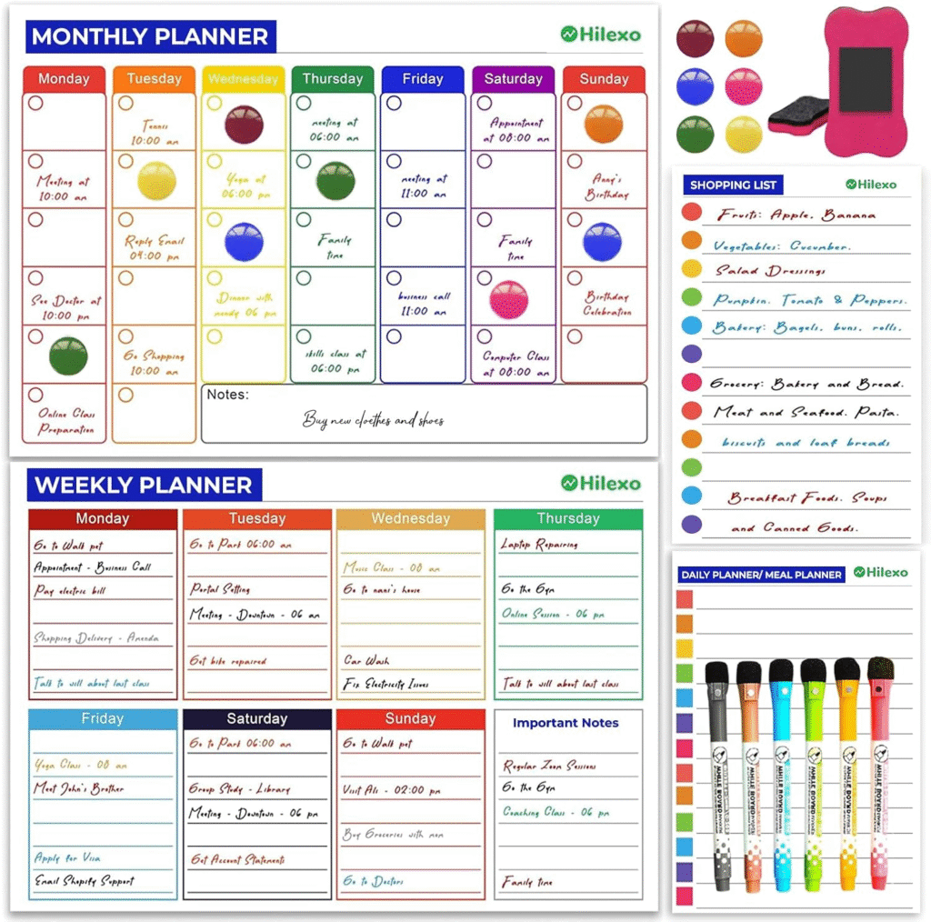 Every evening, I used to ask myself, “What’s happening tomorrow again?” Sports day? Art project? Parent meeting? Now I just glance at our magnetic planner board. It hangs on the fridge and lists out tasks, meals, school activities, and other reminders.
